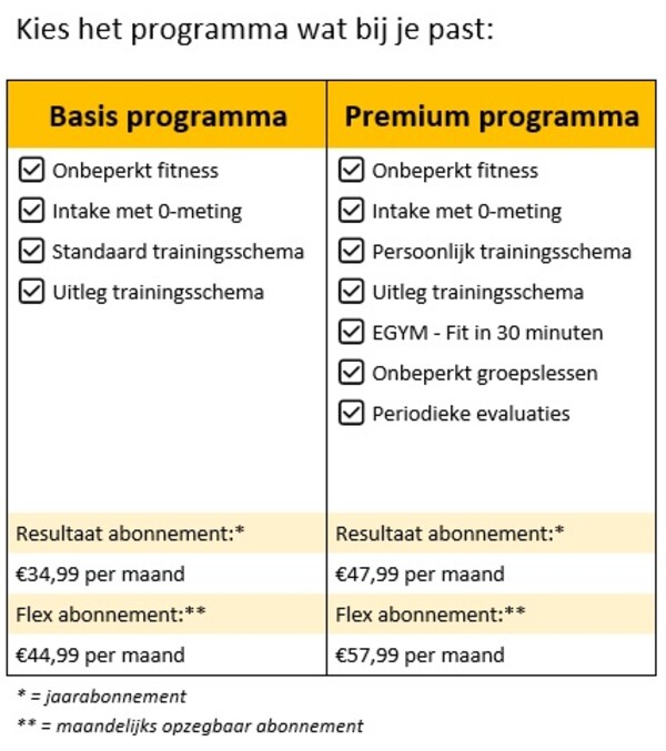 Startersbijdrage: €29,99 (accountactivatie, intake, 0-meting en trainingsschema)